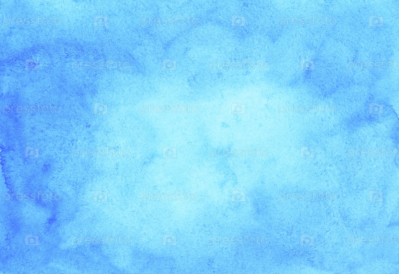 Акварель светло-голубой фоновой текстуры ручной росписи. Акварель небесно-голубые пятна на бумаге