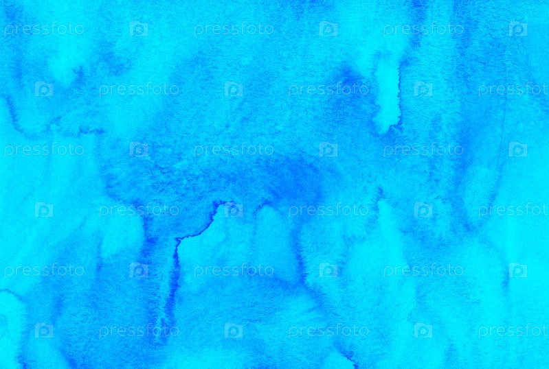 Акварель яркий бирюзовый фон. Акварель темно-голубые пятна на бумаге. Художественный жидкий фон