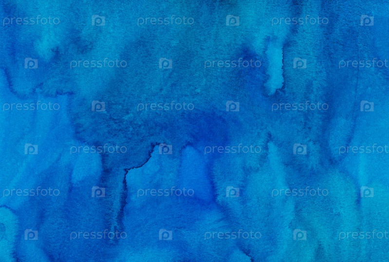 Акварель глубокий лазурно-синий фон текстуры. Акварельный фон ручной росписи. Небесно-голубые пятна на бумаге