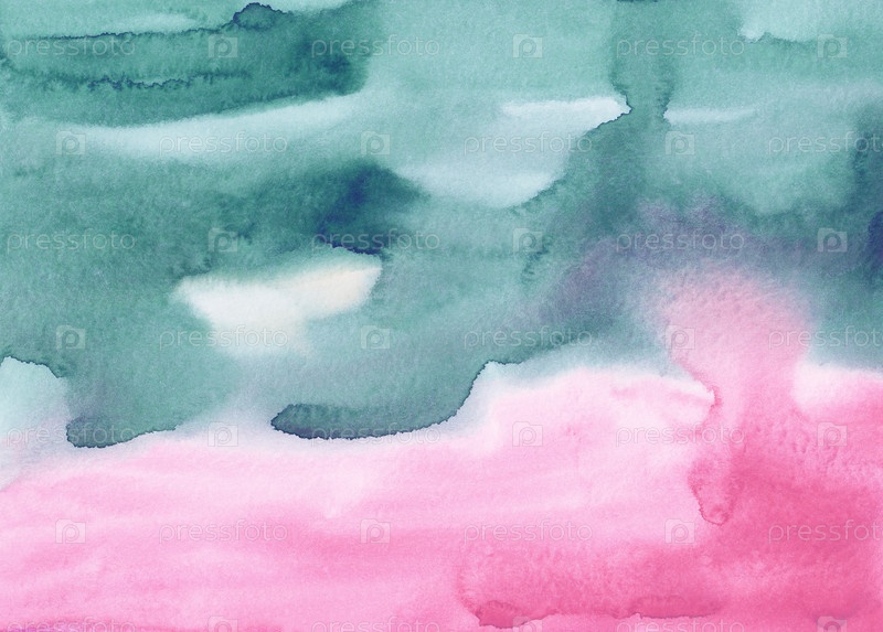Акварель зеленый и розовый фон. Фон из жидкого изумруда и фуксии, расписанный вручную. Пятна на бумаге