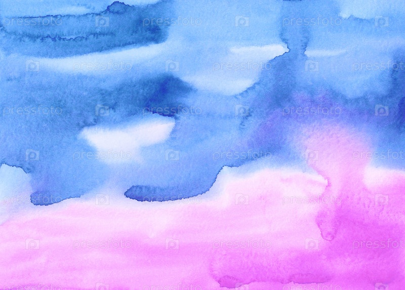 Акварель синий и розовый фон. Жидкий фон, расписан вручную. Пятна на бумаге