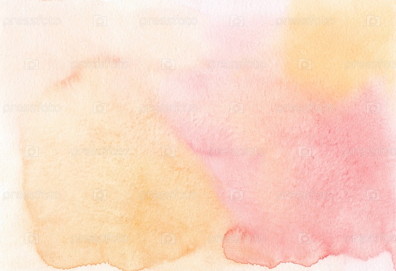Акварельный градиент пастельных оранжево-розовых текстур фона, ручная роспись. Акварель омбре светло-персиковый и розовый цвета фона, пятна на бумаге. Художественная роспись обоев