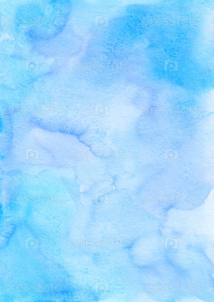 Абстрактная светло-голубая акварельная текстура фона, раскрашенная вручную. Художественный фон пастельного лазурного цвета, пятна на бумаге. Акварельные обои