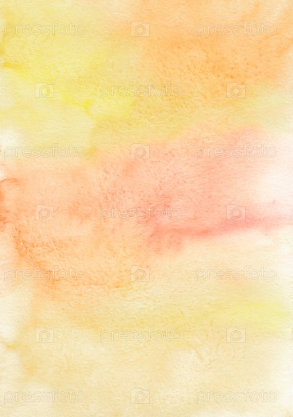 Абстрактная пастельно-желтая и оранжевая акварельная текстура фона, раскрашенная вручную. Художественный фон светло-персикового цвета, пятна на бумаге. Акварельные обои