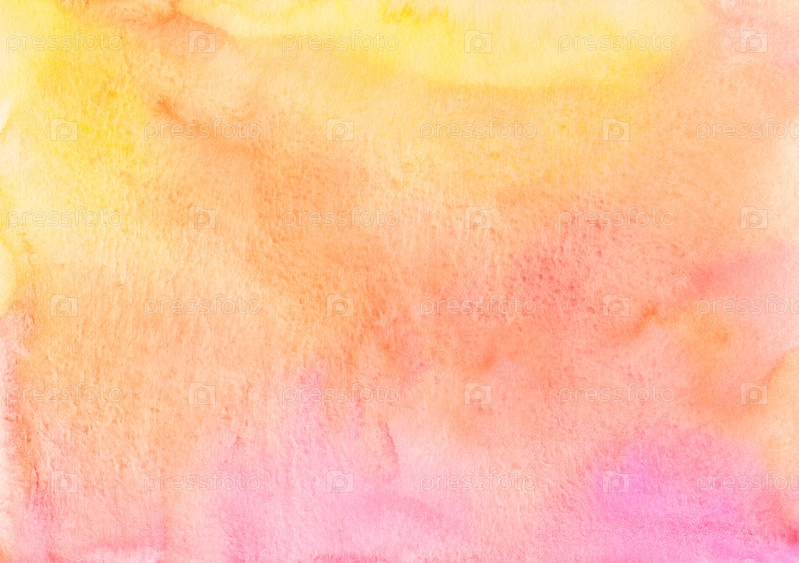 Акварель ярко-желтая, оранжевая, розовая текстура фона. Пятна персикового цвета на бумаге, ручная роспись