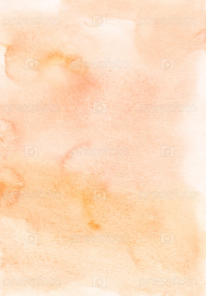 Акварель пастельных персикового цвета фоновой текстуры. Акварельный фон. Светло-оранжевые разводы на бумаге, ручная роспись