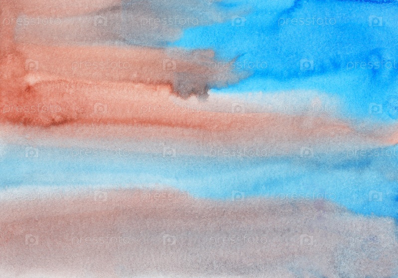 Акварель светло-голубой и коричневый фон. Разноцветный пастельный водянистый мягкий фон. Пятна на бумаге