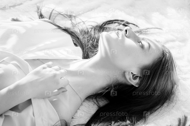 Красивая женщина лежит