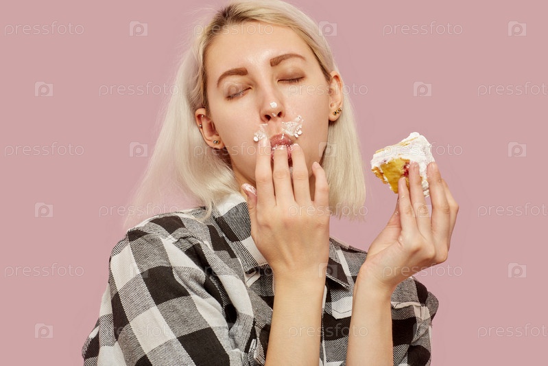Девушка ест десерт