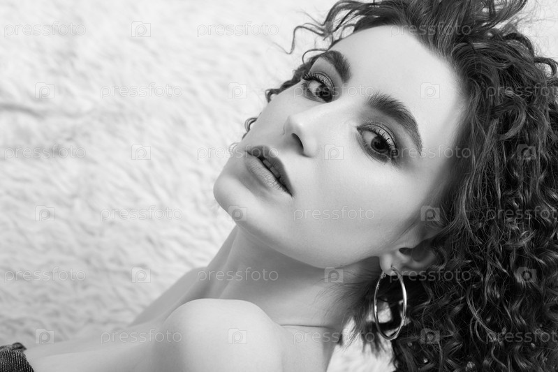 Красивая кудрявая девушка чб