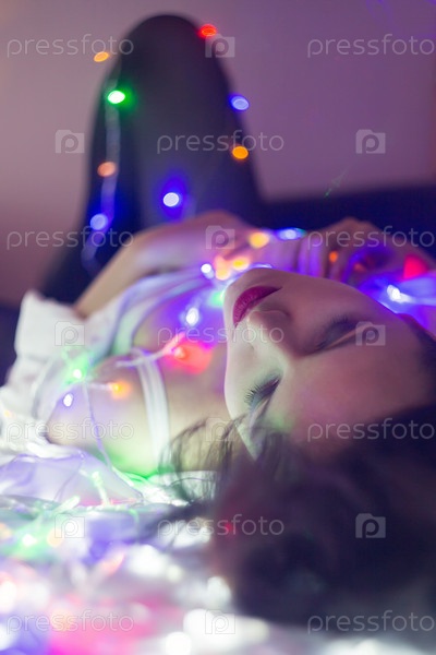 Женщина с рождественской гирляндой