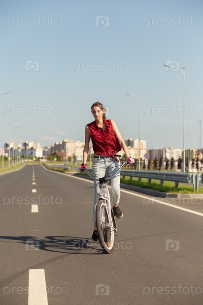 Молодая женщина велосипедист