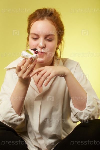Девушка ест десерт