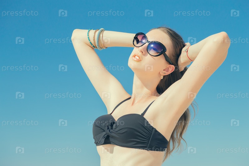 Красивая девушка загорает