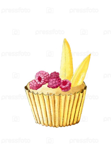 Акварель - еда - кекс - манго