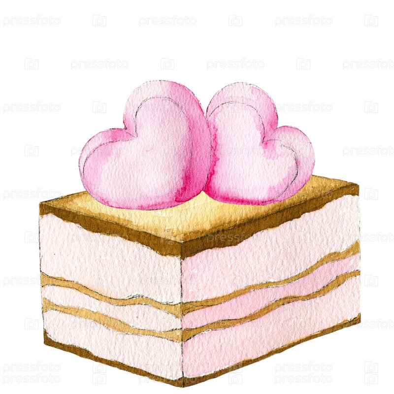 Акварель - еда - слоеный пирог - сердечки