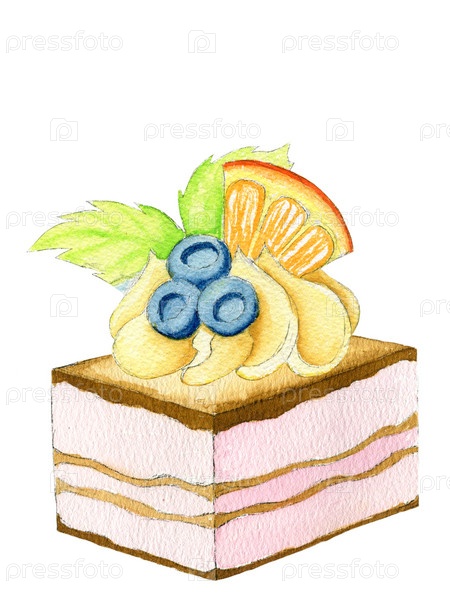Акварель - еда - слоеный пирог - апельсин
