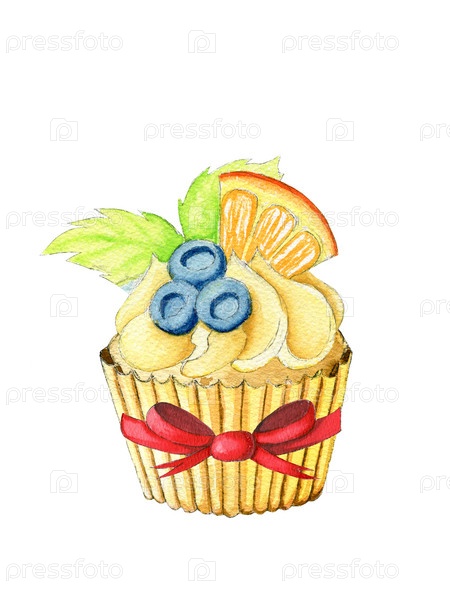 Акварель - еда - кекс - апельсин - бантик