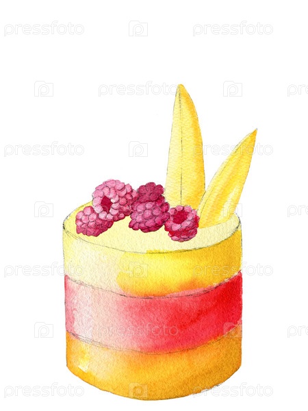 Акварель - еда - трехслойный торт - манго