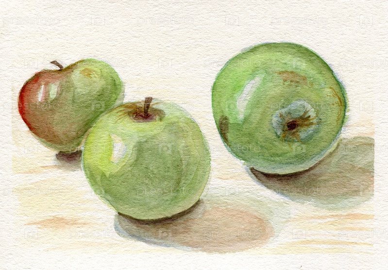 Акварель - фрукты - яблоки - зелень