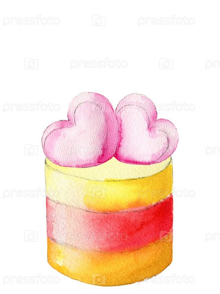 Акварель - еда - трехслойный торт - сердце