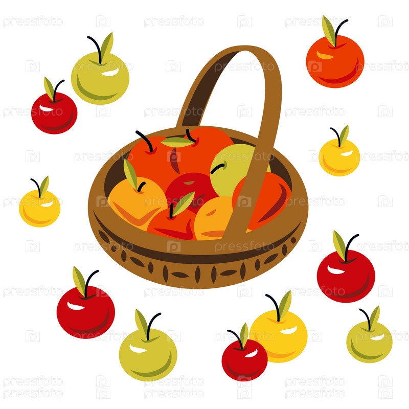 Набор яблок, корзина с яблоками