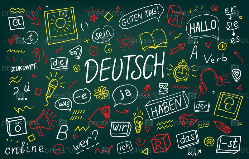 Немецкий. Переводчик языка онлайн. Концепция изучения немецкого языка векторные иллюстрации каракули