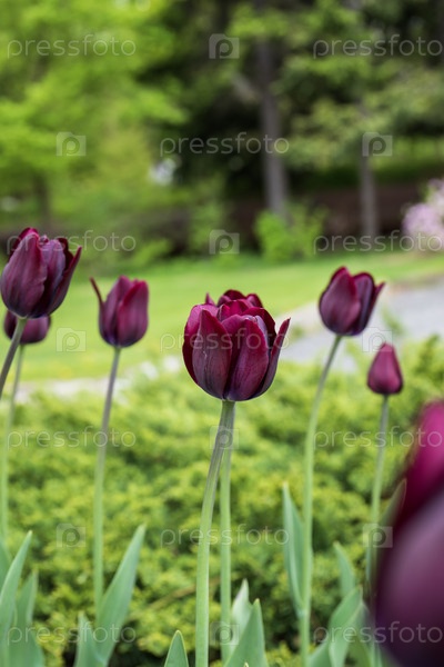 Фиолетовые тюльпаны на клумбе