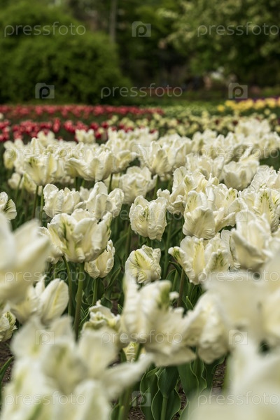 Белые тюльпаны на клумбе