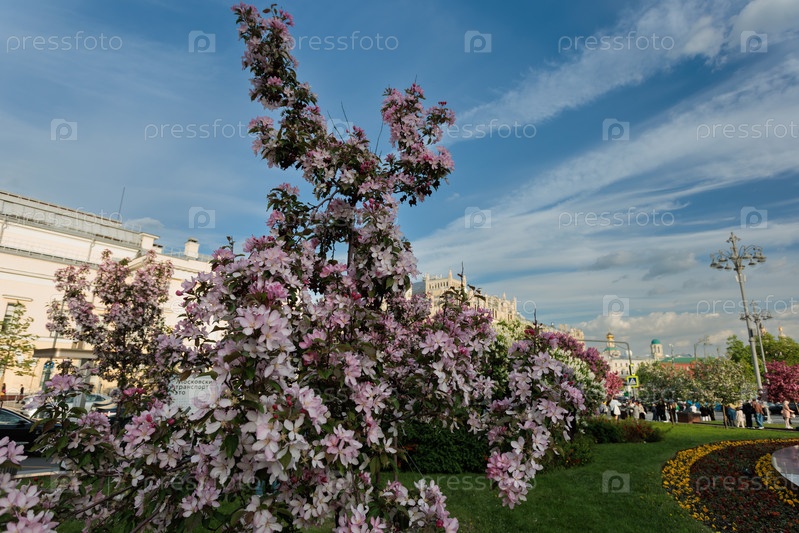 Красивое цветущее дерево в городском парке