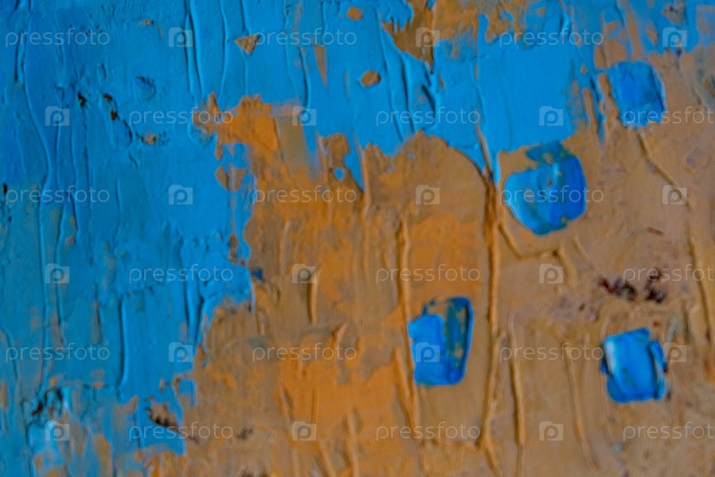 Текстура голубых и бежево - оранжевых мазков на холсте. размыто