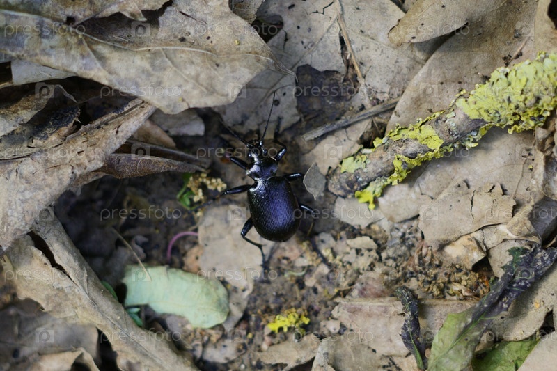Жук на фоне засохших листьев