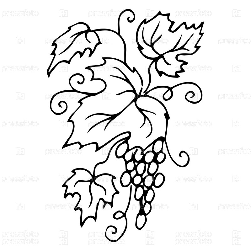 Виноград с листьями, нарисованные вручную грозди винограда, каракули