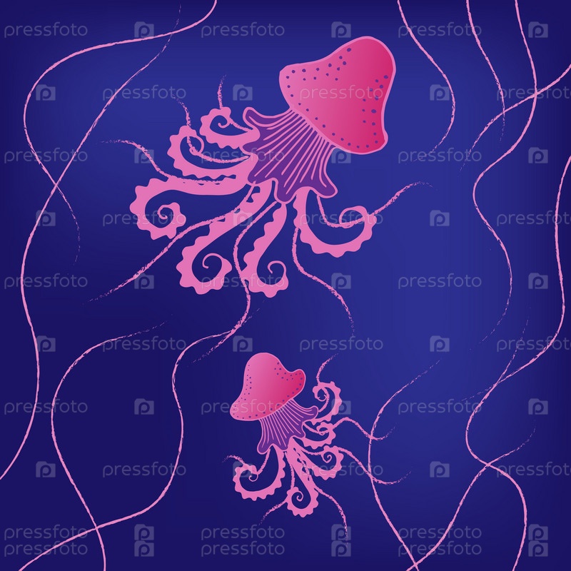 Розовая иллюстрация медузы с милым мультяшным стилем в океане, море