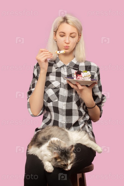 Девушка ест десерт