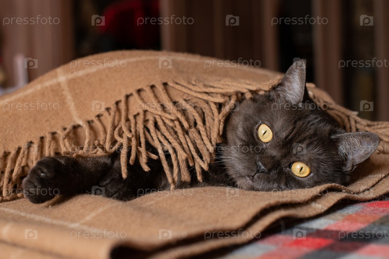 Кот спит накрытый пледом