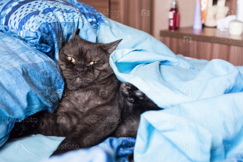 Кошка с лицом понедельника в спальне