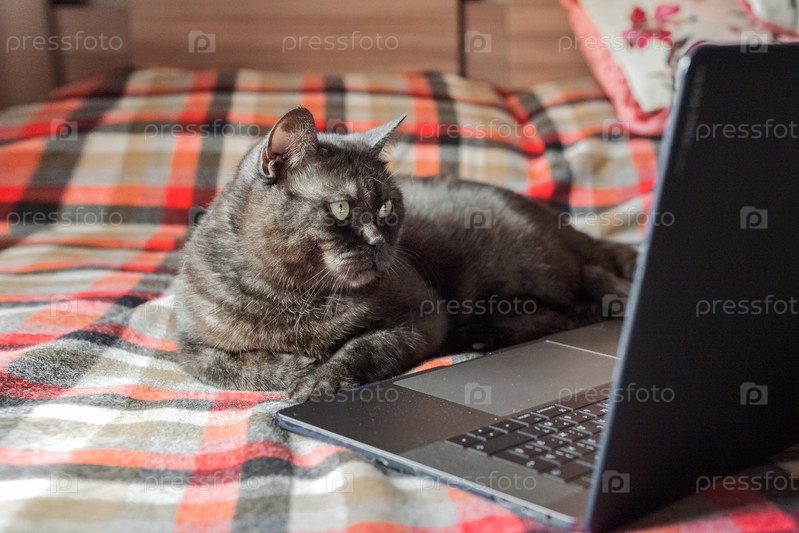 Забавный кот притворяется, что использует ноутбук