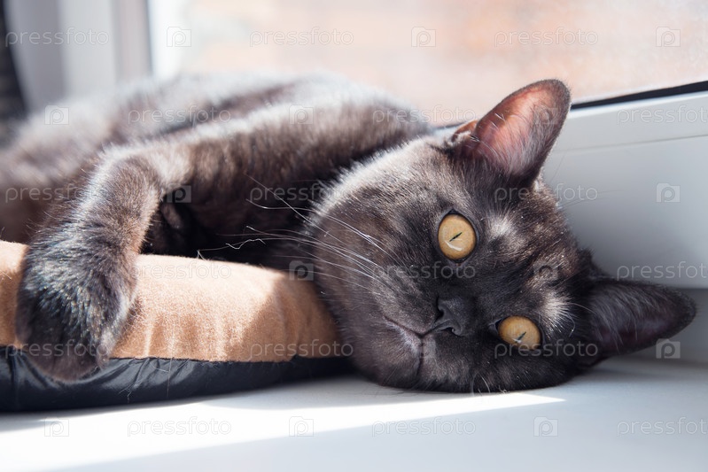 Кот лежит на подушке на подоконнике