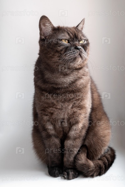Портрет милой серой тэбби-кошки с желтыми глазами, делающей смешное лицо