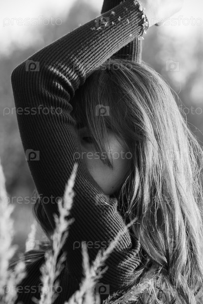 Женщина в сухой траве