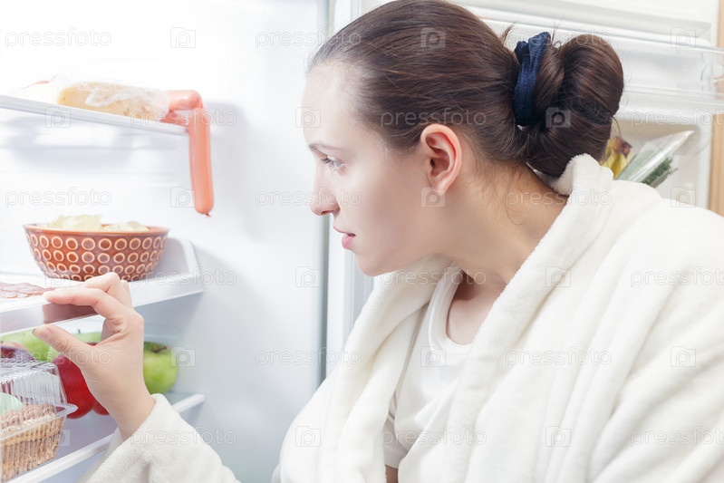 Женщина возле холодильника