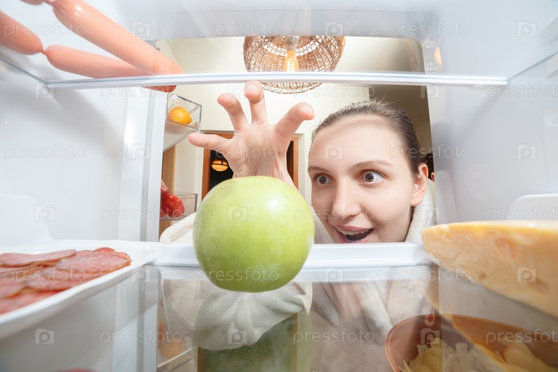 Женщина берет яблоко