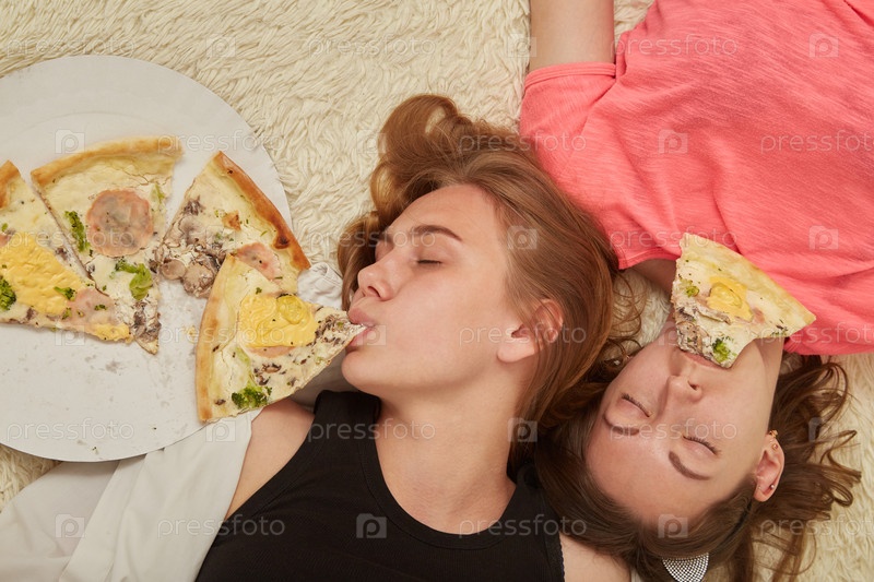 Девушки едят пиццу
