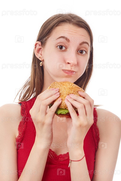 Девушка ест чизбургер