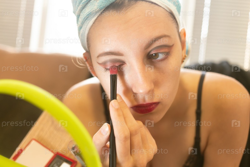 Женщина наносит косметику