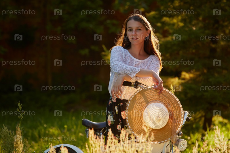 Молодая женщина велосипедист