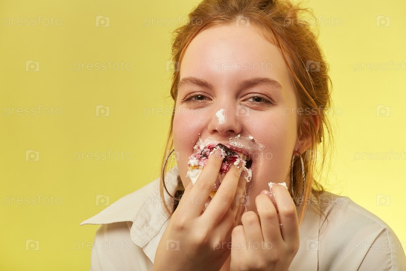 Девушка ест десерт