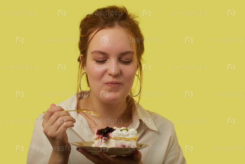 Девушка ест десерт