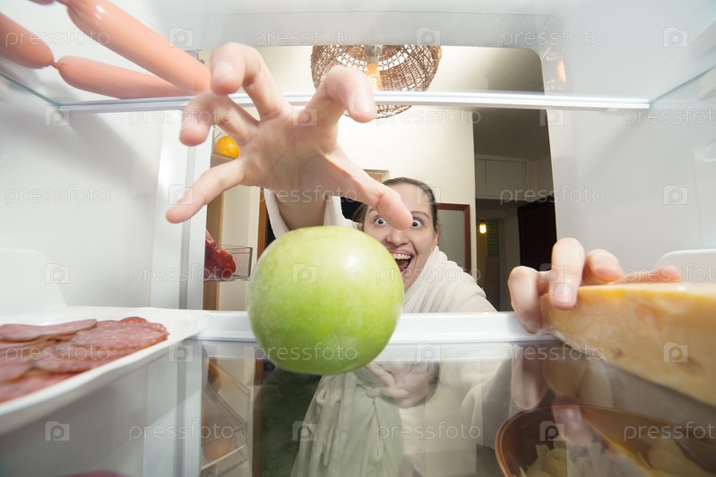Женщина возле холодильника